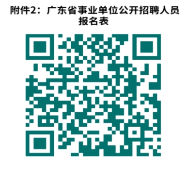 《广东省事业单位公开招聘人员报名表》请扫描附件2二维码下载。