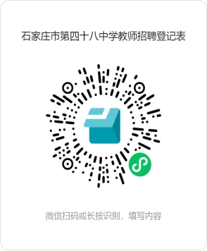 石家庄市第四十八中学(市第二中学初中部)期待招聘身心好、品行好、专业好、形象好、才学好的“五好”优秀教师,让我们一起引领助推青少年形成正确的世界观、人生观、价值观,牢记为党育人、为国育才的初心使命,以德施教,实现教育强国。