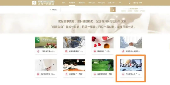 点击网址,进入“闵行区一件事首页”,点击“闵行教师入职”一件事