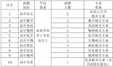 4.非应届生:本科学历学士学位及以上,有相应学科高中教师资格证, 中级专业技术资格的教师年龄要求40周岁(含)以内。副高级专业技术资格的教师年龄可放宽至50周岁。