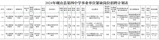 2024年砚山县第四中学事业单位紧缺岗位招聘计划共3名。