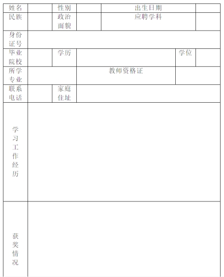北方民族大学附属中学东校区(银川市第十四中学)2024年招聘教师登记表