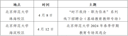 注:珠海市斗门区富山学校仅参加北京师范大学珠海校区4月8日线下招聘会。