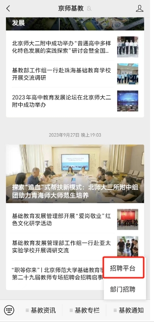 第四步:请应聘者关注“京师基教”微信公众号,简历筛选通过后将于4月22日-24日(暂定)在公众号和报名网站发布考核确认通知,逾时未操作视为自动放弃本次考核。