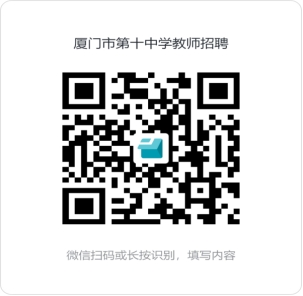 3.线上提交资料:有意者在规定时间内将《厦门市第十中学招聘非在编教师报名表》(见附件)并附上相关证书材料(身份证、毕业证书、教师资格证书、普通话水平等级证书、其他可证明自己工作能力和业绩材料等)电子文档及证书扫描件成一个PDF文件,文件以“应聘岗位+姓名”命名。