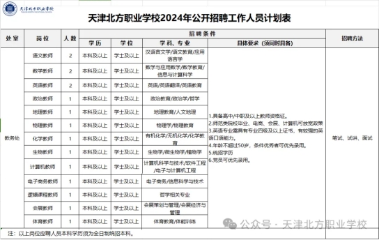 按照公开、公平、公正、竞争、择优的原则,通过报名、考试、体检、公示、政审、聘用等程序组织实施并择优录用。与北方职业学校直接建立劳动关系。