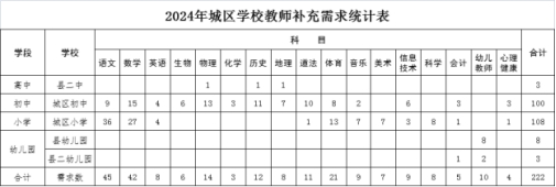 为保证城区中小学、幼儿园教育教学工作正常开展,改善城区中小学、幼儿园教师队伍结构,根据城区中小学、幼儿园教师缺额实际,经研究决定,从全县在编在岗的公办教师中公开补充部分工作人员到城区中小学、幼儿园任教。