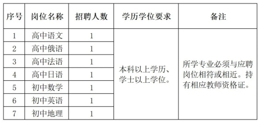 本次面向社会公开招聘临聘教师7名,岗位详见下表: