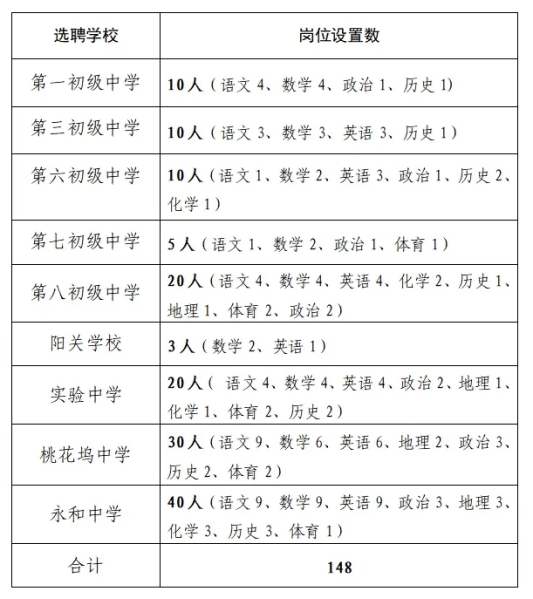 2024年城区缺编学校面向农村初中选聘教师计划分配表