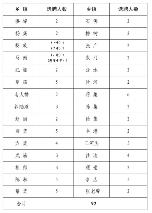 (二)从乡镇初中教师选聘92人,从乡镇中心校教师选聘208人。