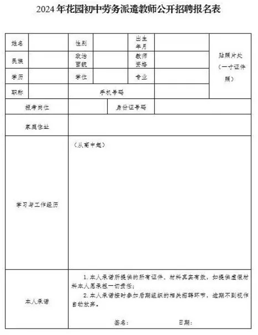 附件:2024年马鞍山市花园初级中学劳务派遣教师公开招聘报名表