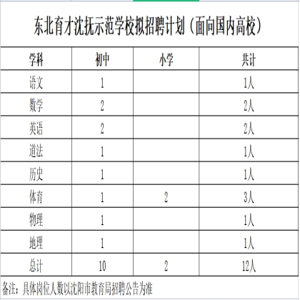 (其他招聘要求以沈阳市教育局招聘公告为准)