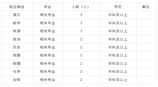 初中教师招聘岗位计划