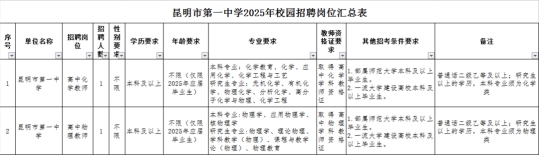 根据《昆明市教育体育系统2025年校园招聘工作方案》文件通知,现将昆明市第一中学2025年校园招聘有关事项公告如下: