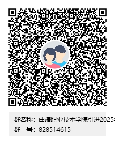 3.网络预报名成功的考生,请扫码加入“曲靖职业技术学院引进2025年教育人才工作群(828514615)”QQ群,入群后以“姓名+岗位”命名。