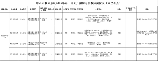 中山市华侨中学招聘场次:中山考点场次、武汉考点场次。