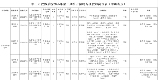 (三)符合报考条件的2025年中山市生源的公费师范毕业生可不受报考岗位的学历学位要求限制,但专业或专业方向须与招聘岗位一致。