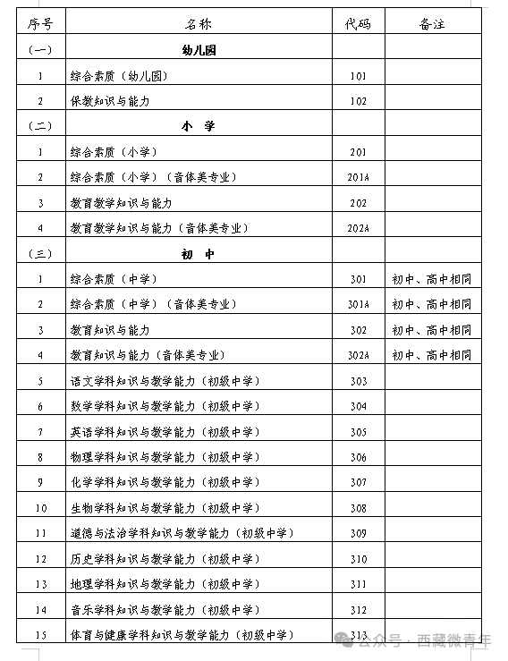 1.中小学教师资格考试(笔试)科目及代码表