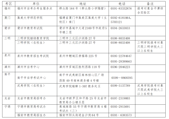 5.福建省各考区中小学教师资格笔试审核点