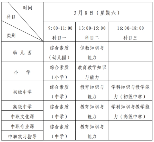 (三)申请中等职业学校专业课和中等职业学校实习指导教师资格的人员参加高级中学科目一、科目二两科考试,科目三学科结合面试进行考核。