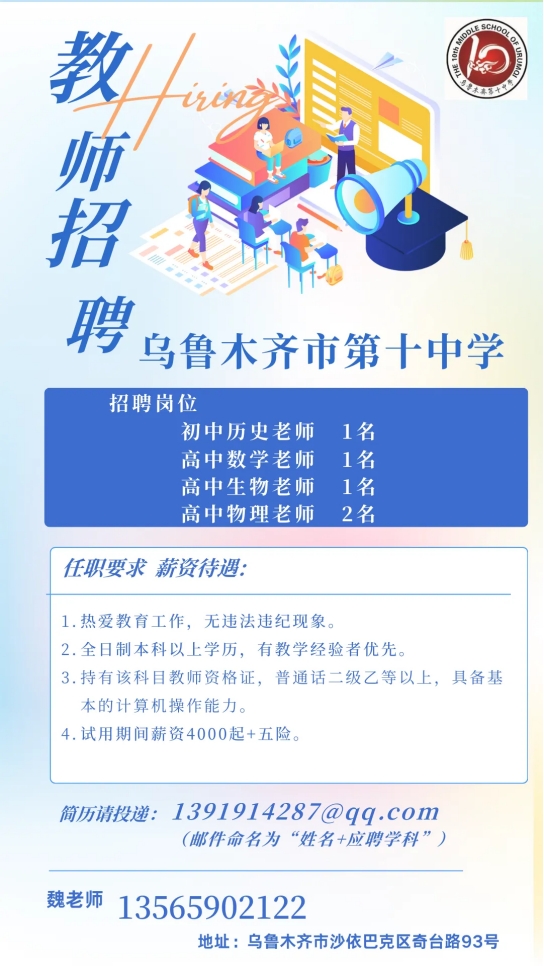 2025年新疆乌鲁木齐市第十中学教师招聘公告