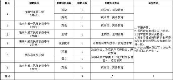 为进一步加强师资队伍建设,优化队伍结构,促进教育均衡、高质量发展,海南州教育局面向社会公开招聘高中临聘教师9名。现将有关事宜公告如下: