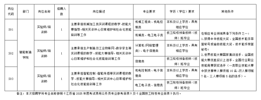 招聘岗位及条件等详见《苏州健雄职业技术学院2025年长期公开招聘高技能人才岗位表》(以下简称《岗位表》)。
