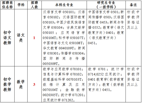 2.普通招生计划一本院校(或一本专业)及以上学历2023年、2024年、2025年优秀毕业生,所学专业与招聘教学岗位要求相符(未在编在岗,在校期间总体成绩优异,所学专业必修科目无挂科且须在资格复审时提供相应的教师资格证)。