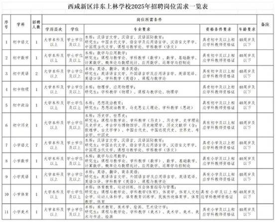 西咸新区沣东上林学校教师招聘公告