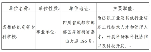 考试、体检、考察合格者由成都纺织高等专科学校确定为拟聘用人员,并在省人社厅官网“人事考试”专栏、省教育厅官网及成都纺织高等专科学校网站上公示7个工作日。