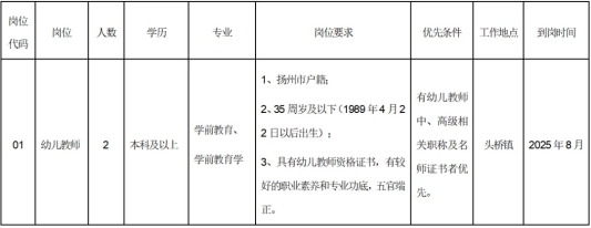 共招聘幼儿教师2名。