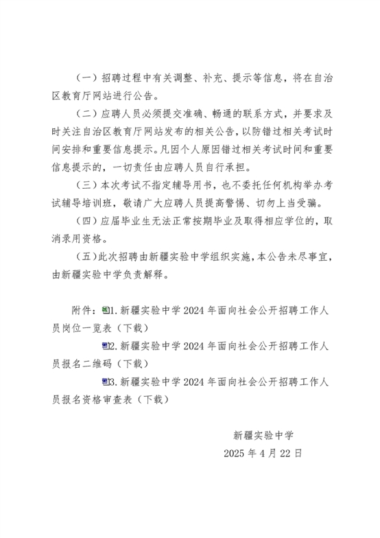 1.新疆实验中学2025年面向社会公开招聘工作人员岗位一览表.xlsx