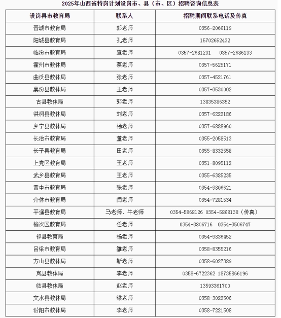 2.实施特岗计划的县(市、区),按照《中共山西省委组织部 山西省人力资源和社会保障厅关于进一步做好艰苦边远地区事业单位公开招聘工作的通知》,可拿出一定数量的岗位面向本县户籍人员或生源招聘,具体数量由设岗县确定。