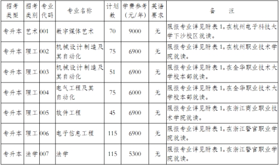 根据《浙江省2025年选拔高职高专毕业生进入本科学习实施细则》文件精神,2025年我校将继续进行选拔优秀高职高专毕业生进入本科学习(简称“专升本”)的工作。
